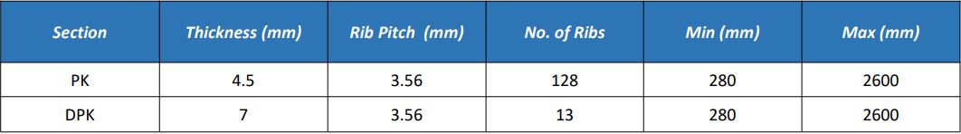 Multi Ribbed Belts are available in PH, PJ, PK, PL and PM profiles, these Belts are available in the standard version, high temperature, elasticated, topcoat; for packaging machinery, anti-static Belts and double-sided multi ribbed belts.